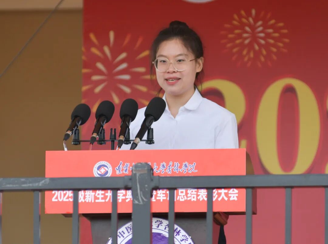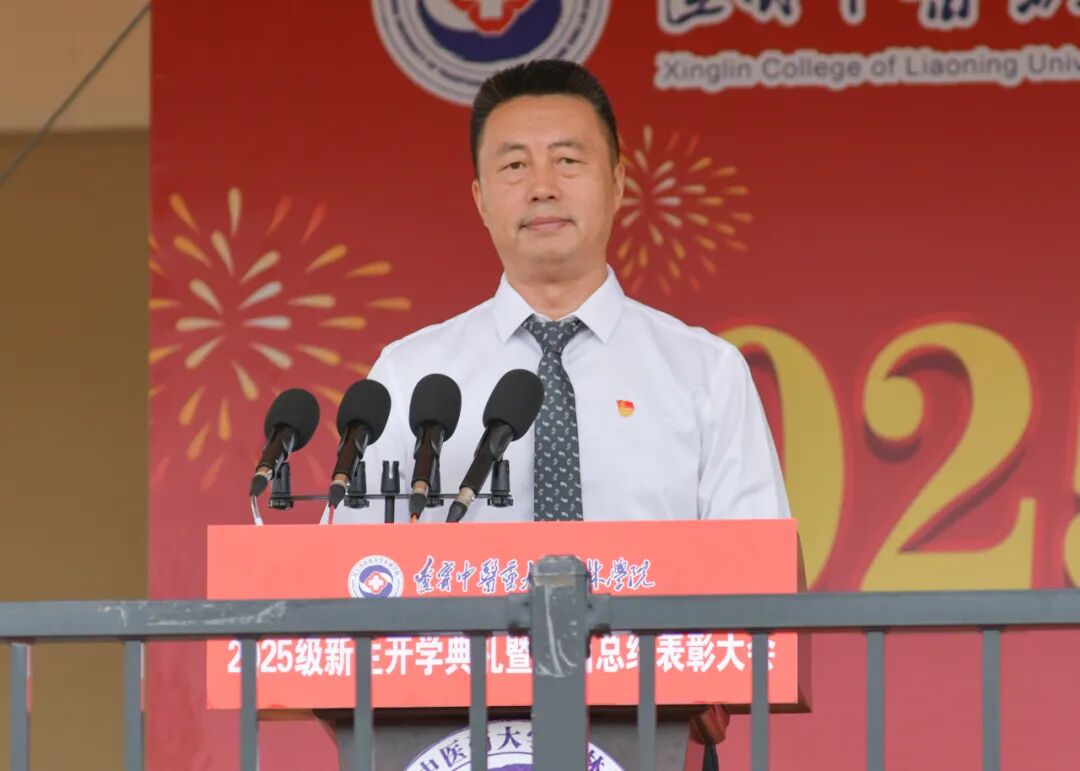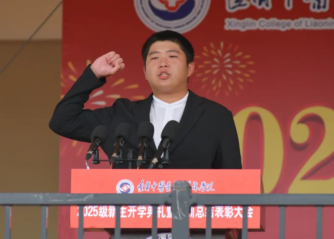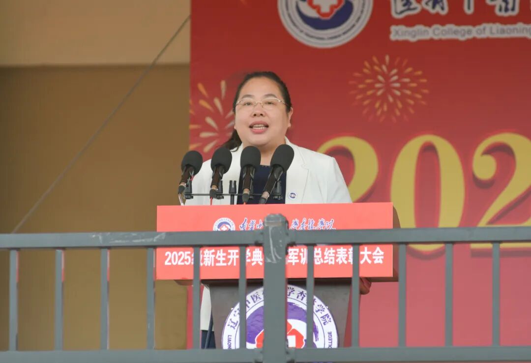 9月22日,辽宁中医药大学杏林学院2025级新生开学典礼暨军训总结表彰大会在学校体育场隆重举行。承训单位领导、全体校领导,学校相关职能部门、各系部负责人,新生辅导员及2025级全体新生参加大会。