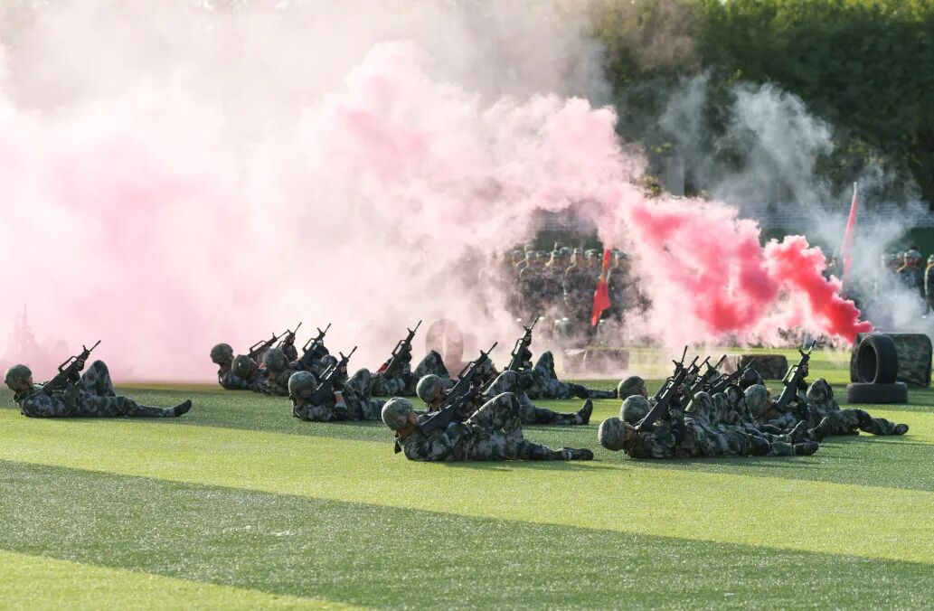 伴着激昂雄壮的乐曲,分列式正式开始。受阅方阵斗志昂扬,步伐坚定,口号嘹亮,气势豪迈地依次通过主席台。军体拳、刺杀操、匕首操、战术对抗刚劲有力,干净利落,展现出2025级新同学朝气蓬勃、昂扬向上的精神风采。