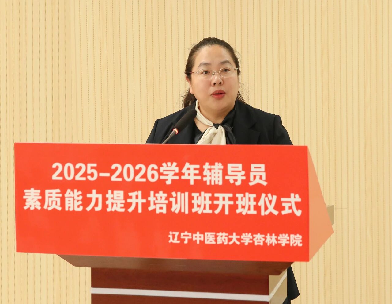 近日,我校在6114学术报告厅举办2025-2026学年“立德树人 立己铸魂”辅导员素质能力提升培训班开班仪式暨“廉洁自律与敬业精神”专题讲座,会议特邀辽宁中医药大学党委巡察办主任郭丽欣讲座。出席仪式的校领导有书记王涛、副书记李冰、学生处、团委、及各系部负责人、全体辅导员、各年级班导师。仪式由学生处处长李珺主持。