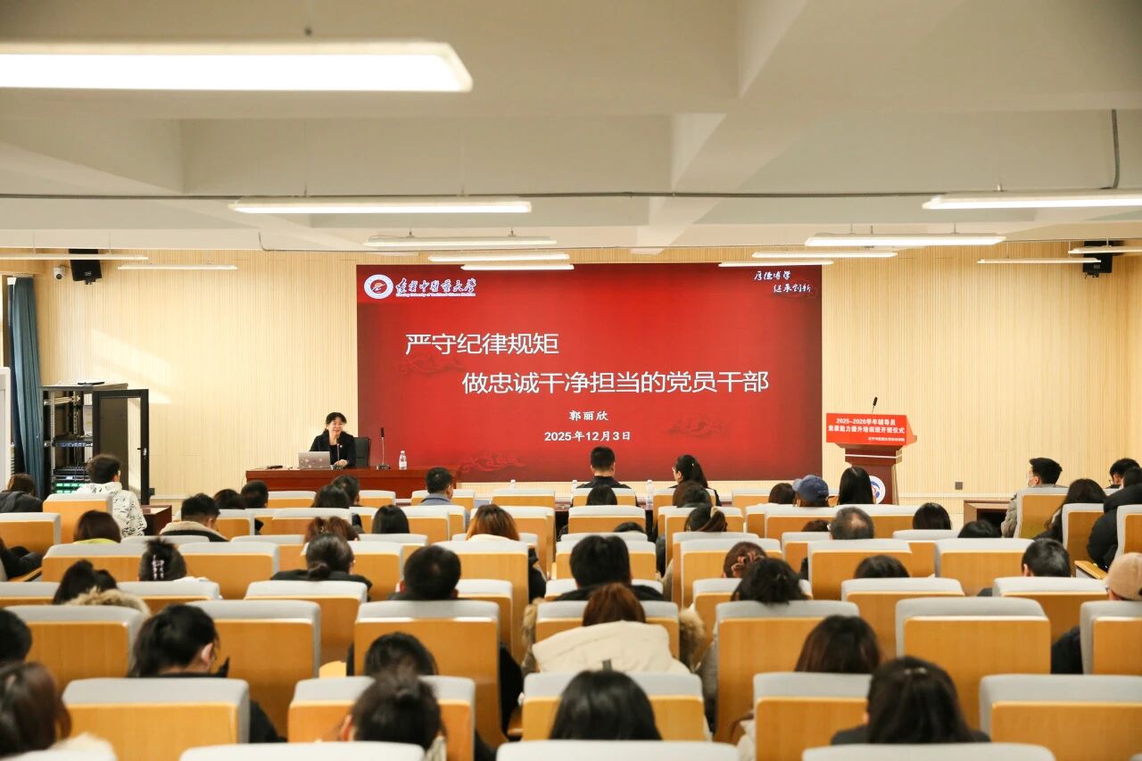 郭丽欣主任作“严守纪律规矩,做忠诚干净担当的党员干部”专题辅导报告,紧扣廉洁自律与师德师风建设主线。讲座深入解读全面从严治党要求,明确其核心是坚持和加强党的全面领导;深刻指出《中国共产党纪律处分条例》的多次修订,体现了全面从严治党向纵深推进的坚定决心,为党员干部划定了清晰的行为底线。