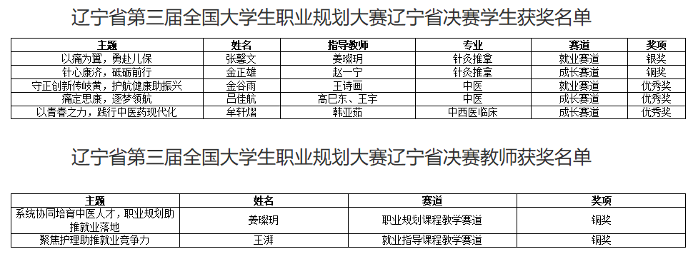 2026年3月13日,辽宁省第三届全国大学生职业规划大赛省决赛落下帷幕。我院学生斩获银奖一项、铜奖三项、优秀奖三项,成功实现学院在该赛事省级银奖的首次突破,用实力彰显杏林学子青春担当与职业追求,为学院赢得荣誉。