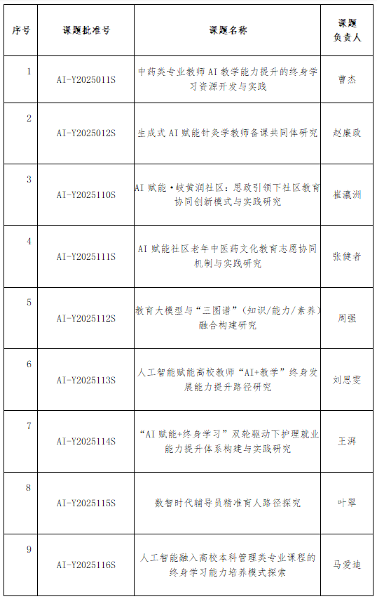 附 件 :中国成人教育协会2025-2026年度“人工智能+终身学习”一般课题立项名单(排名不分先后)